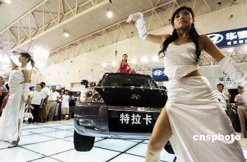 第四届长春国际汽车博览会八月五日正式开展。各汽车厂商为吸引关注,均大打香车美女牌。作者:吴兆飞