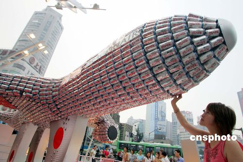 八月十六日,一架由数千罐“健怡可口可乐”组成的港龙航空A330飞机模型登陆上海港汇广场,该飞机模型长八米、宽七点五米,完全按照真实的港龙A330飞机一比八比例打造,并由数十名能人巧匠花费十二天的时间,用“健怡可口可乐”易拉罐精心堆砌而成。这是可口可乐公司携手港龙航空,首度合作推出今夏精彩纷呈的网上有奖竞猜促销活动,惟妙惟肖的造景飞机究竟用了多少罐“健怡可口可乐”搭建而成?作者:潘索菲
