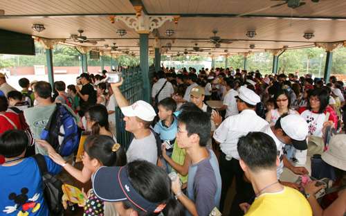 由于昨日到场的宾客仅约有一万六千人,加上警方实施人流管制措施,园内并没有出现“迫爆”情况。较为受欢迎的机动游戏,轮候时间平均约半小时至一小时,整体秩序大致畅顺。在众多机动游戏当中,以“飞越太空山”以及“小熊维尼历险之旅”最受欢迎。