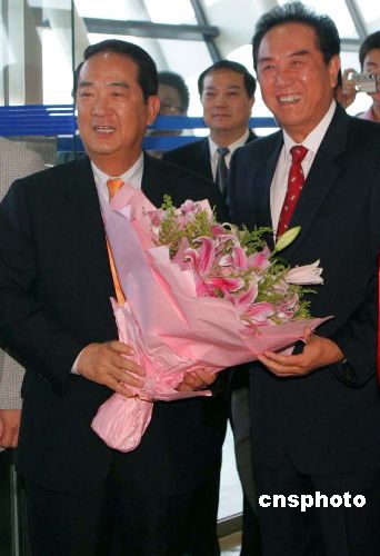 中新社上海九月十四日电 (记者 曾嘉 许晓青)今天中午十二点五十一分,亲民党主席宋楚瑜一行乘坐澳门航空公司NX一零六号班机抵达上海浦东国际机场。这是时隔四个月后,宋楚瑜主席再度来访大陆,此行是为了出席在上海举行的第一届两岸民间菁英论坛。