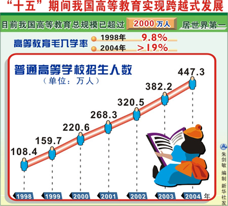 进程:“十五”期间,中国城镇就业状况得到改善,每年新增就业人数呈递增趋势。自2001年到今年8月,全国城镇新增就业人员达4200多万人。在就业岗位不断增加的同时,中国城镇登记失业率也始终控制在5%以内。
