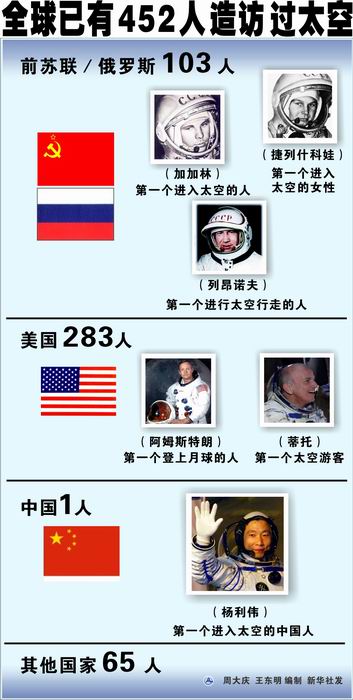 全球已有452人造访过太空