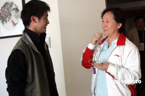 陕西省体育局局长李明华欣喜地迎接“跳水王子”。