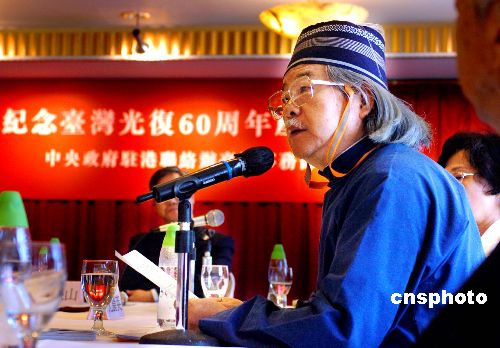 中国文化大学史学系教授﹑社团法人台湾史研究会理事长尹章义先生﹐二十四日在香港纪念台湾光复六十周年座谈会上﹐做“继续完成光复台湾的未竟大业”的发言。作者:宋吉河
