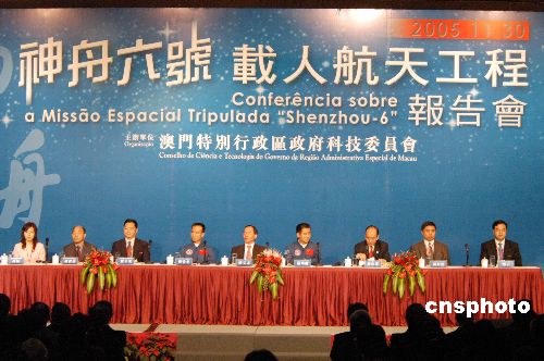神舟六号载人航天飞行代表团,包括航天英雄费俊龙、聂海胜三十日中午抵达澳门外港码头,在场的五百多名澳门市民挥舞着国旗区旗热烈欢迎航天英雄的到来。航天英雄抵澳的第一场活动,神州六号载人航天工程报告会,下午三时在澳门旅游塔会展中心举行。