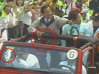 2004.3.19 陈水扁与吕秀莲在台南市金华街扫街拜票时,声称遭枪击。