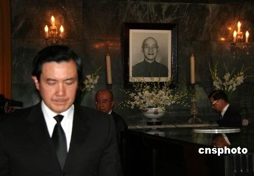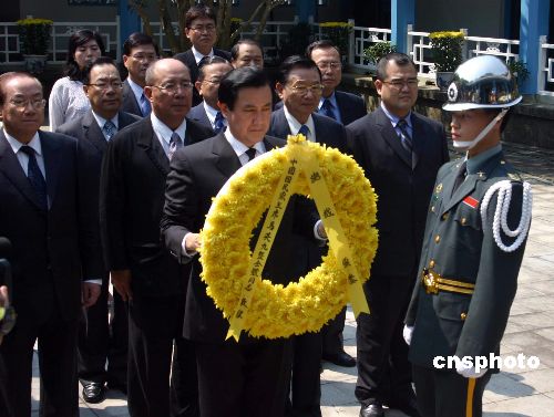 马英九率一行肃立并献鲜花扎制的花圈。中国国民党荣誉主席连战、亲民党主席宋楚瑜所献的花圈也摆放在一旁。佩有“孙孝严率家人泣首”的花圈摆放在陵前。