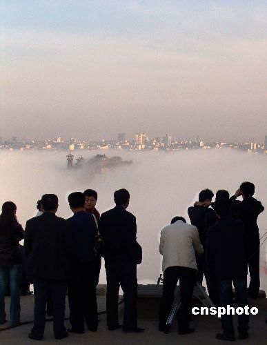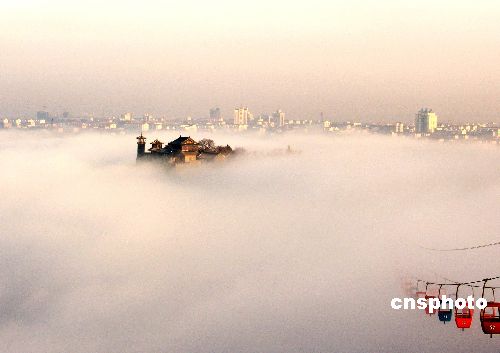 四月二十七日下午,一种多年未现的自然奇观——“仙阁凌空”再次出现在山东蓬莱阁,让很多在场游客真切地体验了一次身临仙境的感觉。当日,位于山东半岛的蓬莱天气状况良好,天蓝海碧,能见度高。从下午十六时开始,海上渐渐升起海雾,而且大雾越来越浓,越来越厚,渐渐弥漫整个海面,将原本清晰的大海慢慢包裹起来,慢慢升腾。放眼望去,如同天宫浮云,给人飘飘荡荡的感觉。 作者:朱恒亮