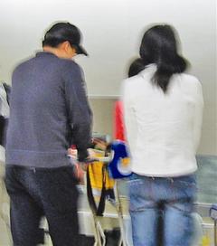 当行李运到后,霍启刚体贴地帮女友将行李从运转盘上取下,小心地搬上行李车,郭晶晶则站在一旁,两人不时低声交谈,互动十分有默契。两人一起将行李推出航站后,随即搭车离开机场。
