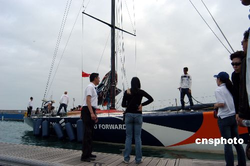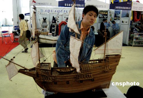 2006年5月26日,以“发展奥运经济,打造帆船之都”为主题的第四届中国国 际航海博览会在青岛拉开帷幕。本届航博会展分为水、陆两区,是中国首次推出的国家级水陆结合船艇展。航博会为期四天,展出包括豪华游艇、帆船、摩托艇、奥运专用工作艇、钓鱼艇、橡皮艇等各种船艇及帆板、水上雪橇、水上自行车等水上休闲娱乐产品。本届展会吸引了众多世界知名品牌前来参展。中新社发 王志德 摄