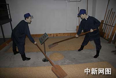 在生产工艺流程区域展示的是老建筑物、老设备及车间环境与生产场景,为重现历史原貌,博物馆在老糖化车间的老发酵池设置了工人生产劳动雕塑模型,复制出老实验室场景和工人翻麦芽场景。值得一提的是,这里居然还残留着酒香,让人仿佛置身于古老的酿制车间一般。