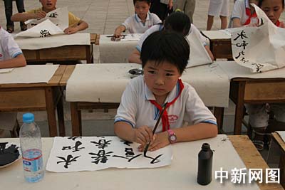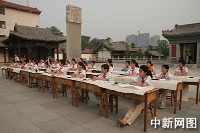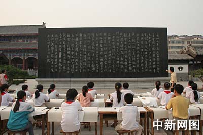 值得一提的是,采访团惊喜地见到一群小学生正在《兰亭序》碑文前练习书法,记者发现,他们虽然小小年纪,但是确有一定的书法功底,也许在不久的将来,临沂会出现更多的书法大家。