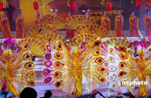 2006年6月15日晚,《齐鲁风韵》文艺晚会在济南山东会堂上演,从而奏响了16日正式开始的山东(国际)文化产业博览会的序曲。晚会以歌舞、杂技、民间表演艺术等形式展现了山东特有的风土人情。中新社发 张侃 摄