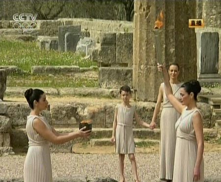 当地时间上午十一时,北京奥运圣火采集仪式正式开始。