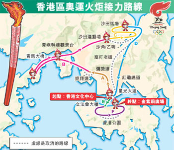中新网4月17日电 据香港文汇报报道,港府16日公布奥运圣火在香港最新传递路线,对原来初订路线作出轻微修订,包括剔除途经香港公园和九龙华仁书院至弥敦道一段,并在港景峰以12架福士老爷车护送车队往青马大桥。18日会按照修订路线进行实地测试。