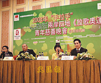 中新网4月25日电 据香港文汇报报道,中国奥委会新闻委员会和澳门青年联合会将于5月3日在威尼斯人综艺馆联合举办“2008年手拉手 两岸四地《放歌奥运》青年慈善晚会”。