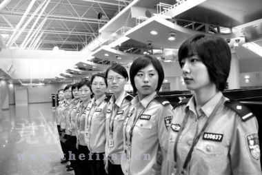昨天上午,几位担负警戒巡逻哨、威武庄严又不失女性温婉的佩械女警正在首都机场T2航站楼入出境边防进行巡视。她们配备了武装带、伸缩警棍、手铐、催泪喷射器、警用强光手电、急救包等“八大件”装备,不仅负责维持口岸现场秩序,处理突发状况,还能受理候检旅客的正当求助,并主动为需扶助旅客提供帮助。