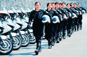就是在这种情况下,从五月至今,魔鬼训练终于有了收获,“警花”们驾驶技能提高程度之快,令男队员们也刮目相看。如今,她们一样能够熟练地驾驶摩托车,编队行进,自如穿桩,应对路面各种复杂状况。女警们告诉记者,现在她们已经差不多达到了“人车合一”的境界。男女队在“紧急制动”科目的一次挑战赛中,居然是女队“完胜”——估计前提是男队员谦让了一点。