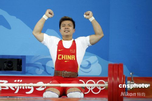 图:张湘祥获得举重男子62公斤级金牌