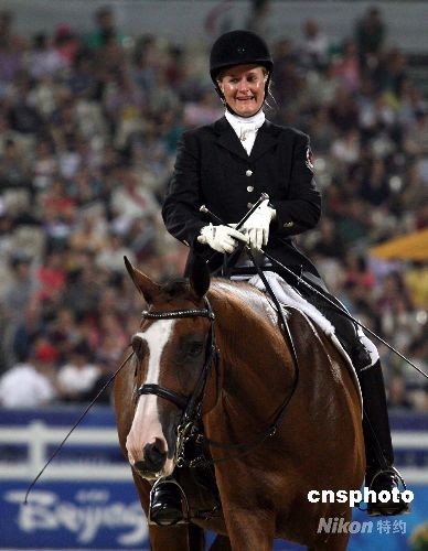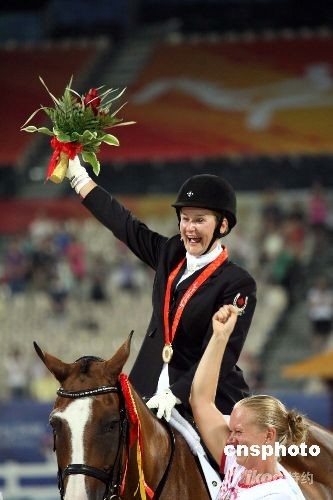 九月十日晚,来自加拿大选手劳伦·巴威克在香港残奥马术个人自选动作科目-级别II上夺得金牌。中新社发 洪少葵 摄