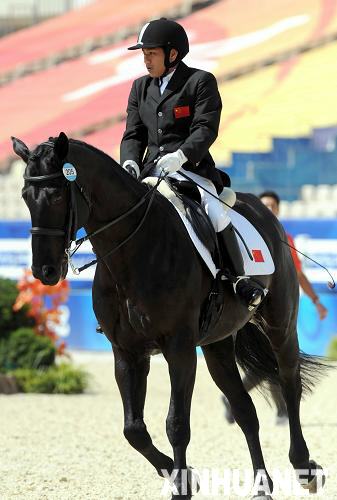 9月10日,中国骑手彭裕连在北京2008年残奥会马术个人自选动作(II级)比赛中,以66.279分的成绩暂列第三名。