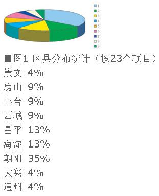 据初步统计,7月份北京市将有23个住宅新盘陆续入市。其中,朝阳区分布的最多,有8个项目;其次是海淀和昌平,各有3个;接着是西城、丰台和房山,各有2个;崇文、通州和大兴最少,各有1个。