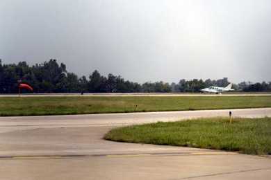 在5191航班坠毁之后,列克星顿机场上一架小型飞机正在跑道上起飞。(章田/雅龙)