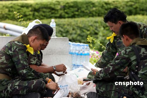 泰国军事政变后,全国进入紧急状态,连日来,驻守在曼谷的士兵仍然严阵以待,但局势渐趋平稳,曼谷街头的气氛也相对缓和。中新社发 洪少葵 摄