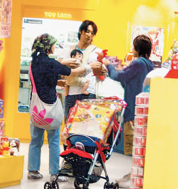 据台湾媒体报道,二十六日下午,陶子一家三口在诚品书店信义店的儿童部门出现,李李仁用婴儿背带把豆豆背在胸前照顾,陶子则专心挑选童书,她最后挑中一组学习玩具,李李仁马上为价值两千五百六十元(新台币 下同)的玩具埋单。