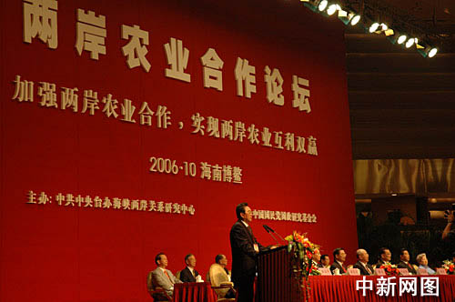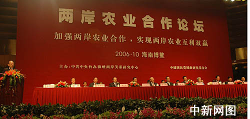 由中共中央台湾工作办公室海研中心与中国国民党国政研究基金会共同主办的两岸农业合作论坛17日上午9时在博鳌开幕。