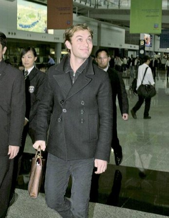 中新网11月24日电 有“好莱坞型男”之称的裘德·洛(Jude Law)昨日到港,这位新一代以迷人眼神杀死Fans的型男,即使坐了超过10小时的长途机,但步出机场前依然神采奕奕,免有失Dunhill代言人的身份,更有9名大汉随身保护,显其巨星气派,但他笑容满脸未有架子;同时他对工作人员表示,自己对香港夜景慕名已久,故希望此行能有机会夜游及体会香港夜生活。