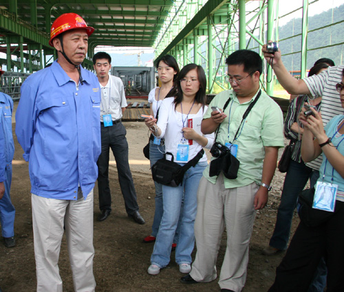 7月19日,参加“首届中国网络媒体吉林行”的记者一行数十人参观了通钢集团。