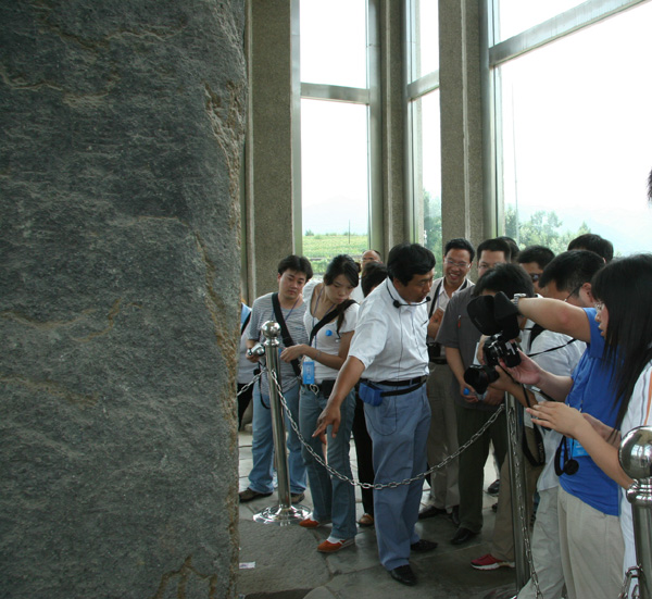 中新网长春7月20日电 7月20日,参加“首届中国网络媒体吉林行”的部分记者数十人抵达吉林集安市,并参观了高句丽文化遗址好太王碑。