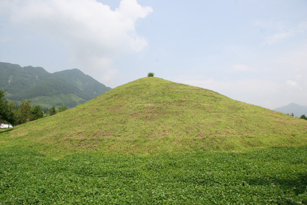 五盔坟5号墓是全国重点文物保护单位,位于集安城东北2公里处,为截尖方锥形封土墓,残高3米,墓室低于地面3-4米。由墓道、甬道、墓室三部分组成。墓室东西长4.37米,南北宽3.56米,用修琢工细巨型花岗岩石砌成,白灰勾缝。墓室内置三石棺床,东西并列,东西两棺床紧靠两壁,以石灰勾缝。中间棺床系一完整石材琢成。东西两棺床各补一小截。墓室的四壁、藻井、棺床及甬道左右两壁都绘有绚丽的壁画,内容分为四神、各种仙人、飞天等。5号墓室构筑宏伟,绘画技巧娴熟,应是高句丽晚期的王族墓葬,大约在6世纪末。
