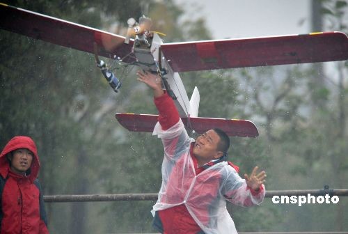 图:浙江宁波举行航空模型特技飞行表演
