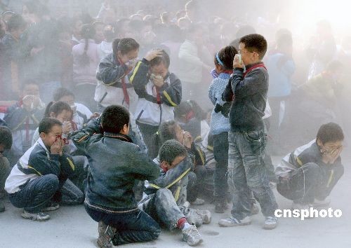 图:乌鲁木齐小学举行消防演习