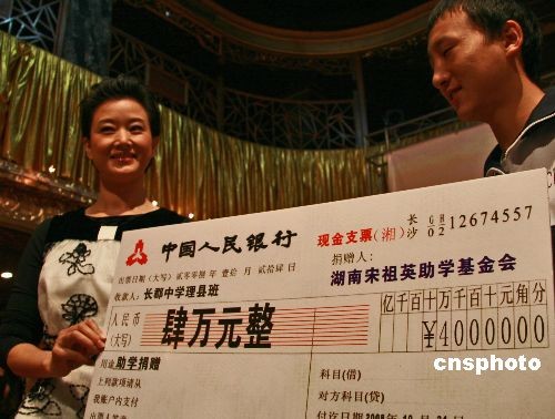 图:奥运冠军杨凌向宏志班学生提供爱心捐赠