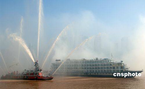 图:重庆举行内河旅游客轮火灾扑救演习