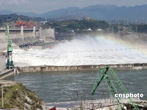 图:三峡大坝首泄冬洪 白雾蒸腾彩虹飞舞
