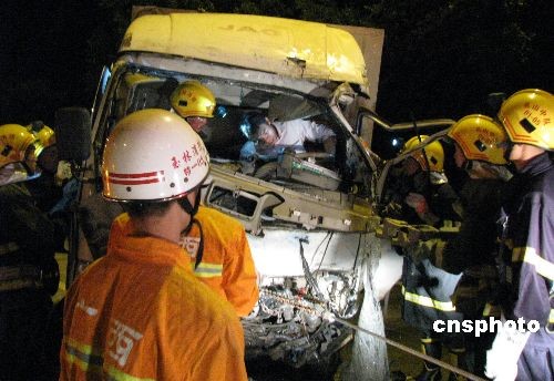 图:广西玉林两货车相撞 一死三伤