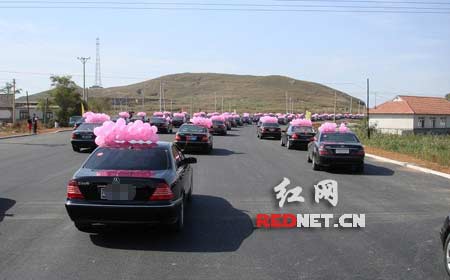 悍马领队百辆奔驰 看"史上最牛"婚车队伍