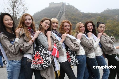 图:各国模特选手游览长城