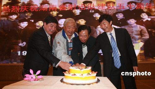 图:湖南省射击队庆50华诞 王义夫前来祝贺