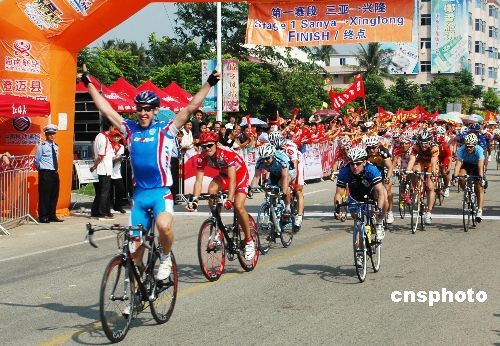 图:俄车手称雄环海南岛自行车赛第一赛段