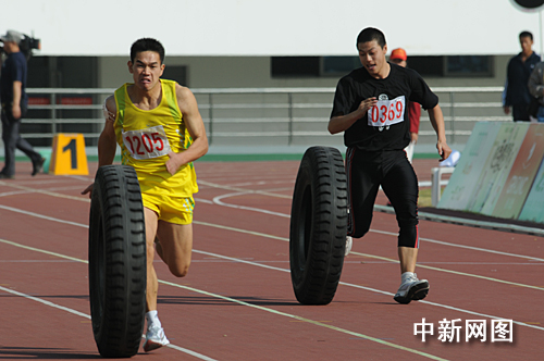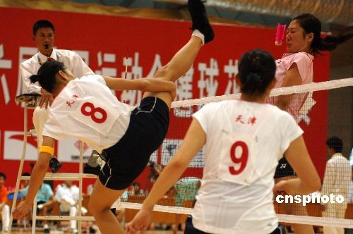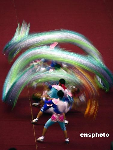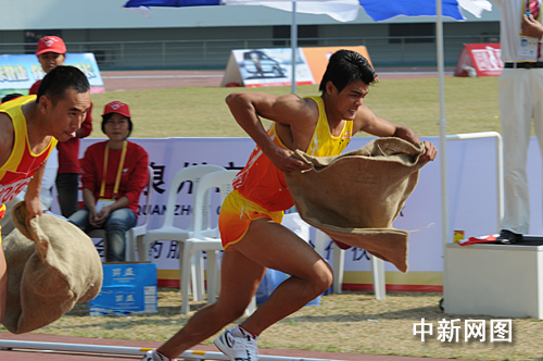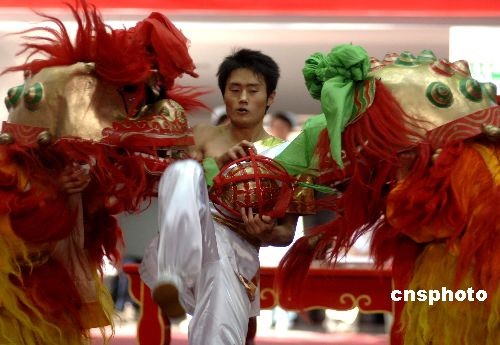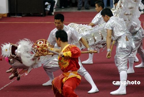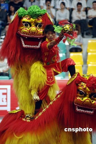 图:第六届农运会上演精彩纷呈的舞狮赛