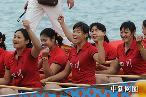 组图:农运会龙舟竞速 四川女队笑容灿烂