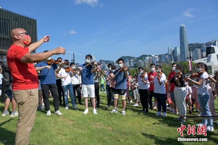 香港团体举行“庆回归 开新篇——维港快闪暨交响音乐会”