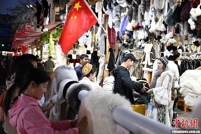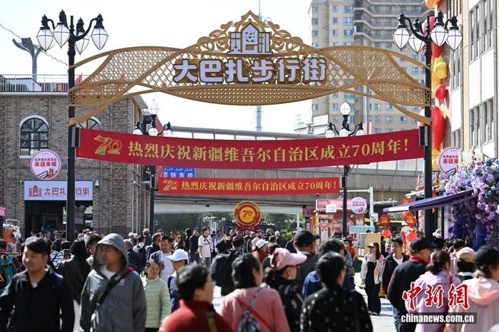 (砥砺奋进七十载 天山南北谱华章)乌鲁木齐和田二街夜市吸引游客