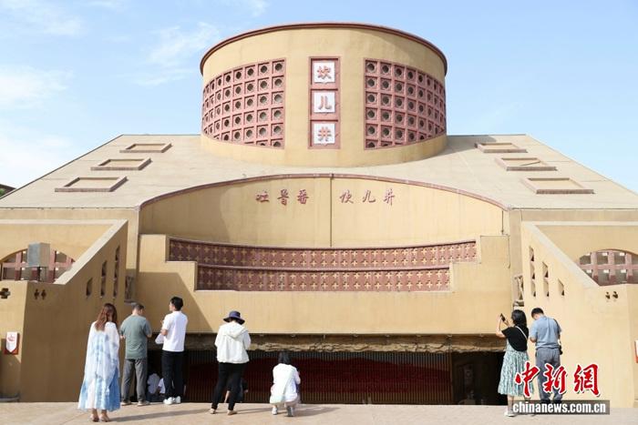 (砥砺奋进七十载 天山南北谱华章)新疆吐鲁番坎儿井民俗园吸引游客