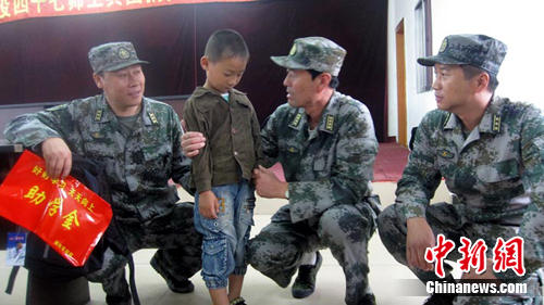 师长张宝军说,救下男孩后,部队忙于救人,与男孩失去联络。这段时间以来,张宝军对男孩极为牵挂,他希望找到这个“光屁股”孤儿,了却一桩心愿。8月22日上午10时,在旺起镇小学,张宝军终于见到了“光屁股”男孩张官博,他轻轻将男孩抱起,告诉他要坚强,要乐观,要好好生活。“我会以个人的名义,一直资助你上大学,你记住爷爷的话,要坚强。”张宝军眼睛湿润,却坚定的看着“光屁股”男孩。(完)